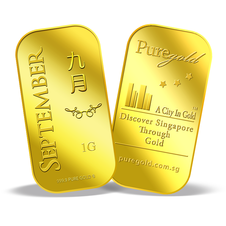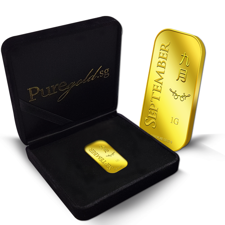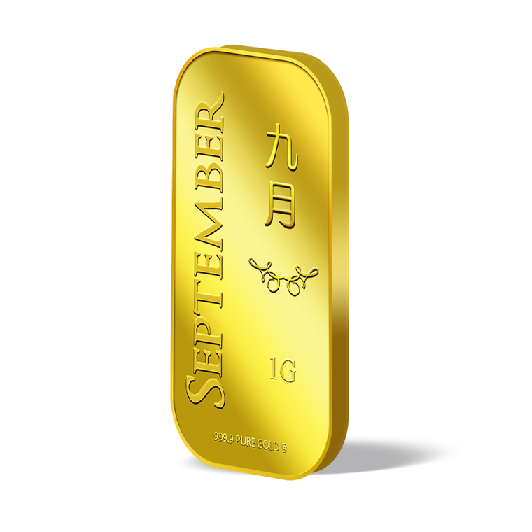 The image is embossed on a 1 gram 999.9 fine gold bar.