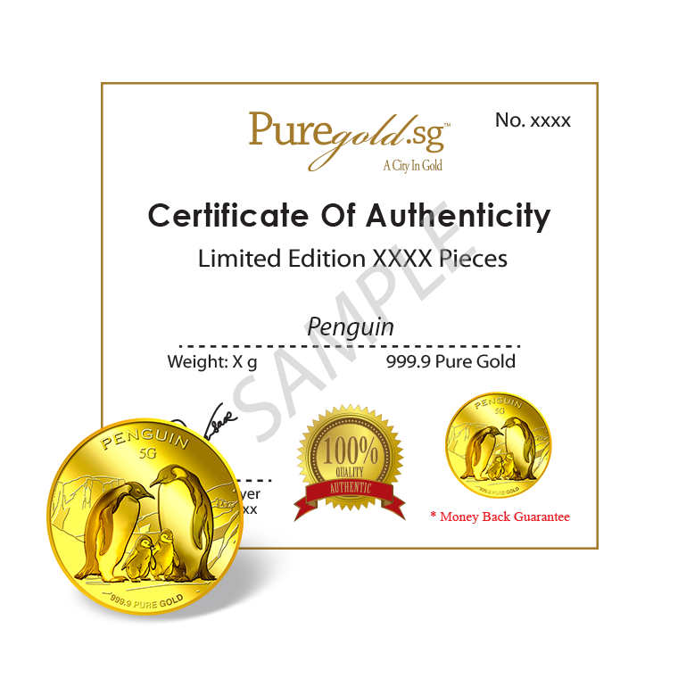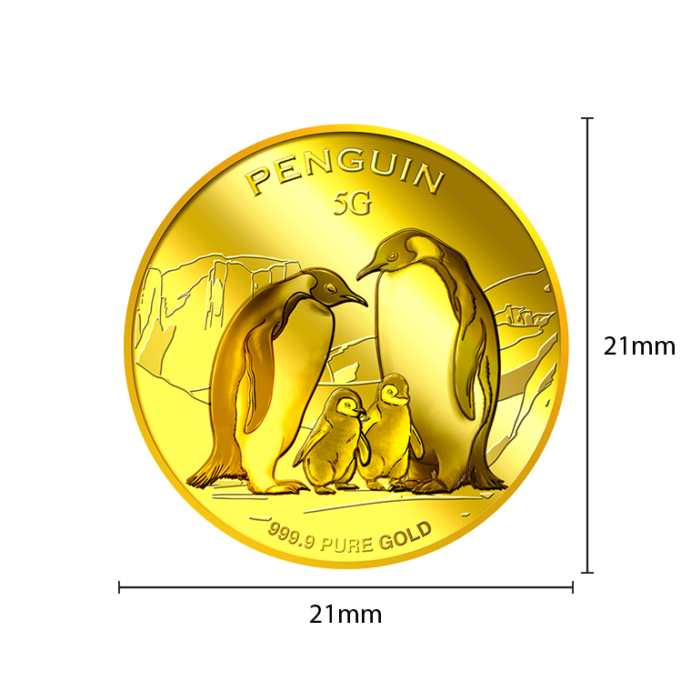 The image is embossed on a 5 grams 999.9 fine gold medallion.