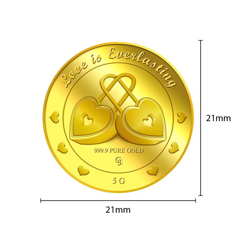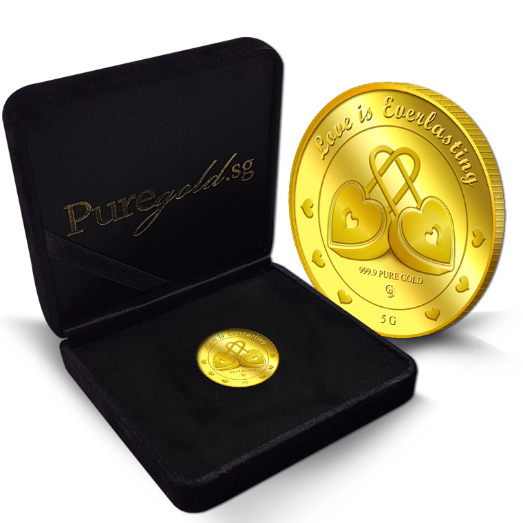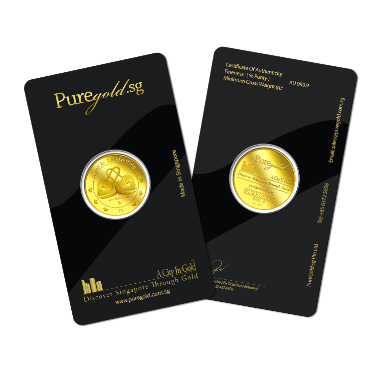 The image is embossed on a 5 grams 999.9 fine gold medallion.
