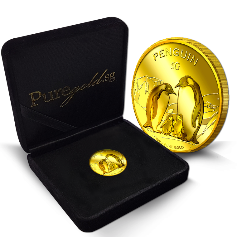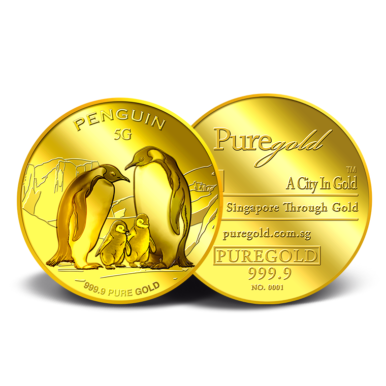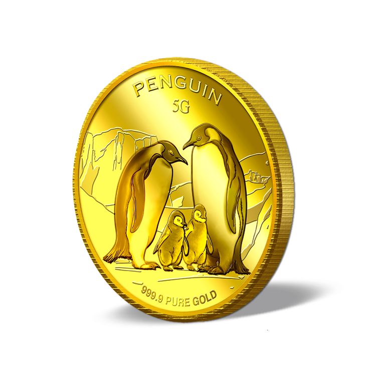 The image is embossed on a 5 grams 999.9 fine gold medallion.